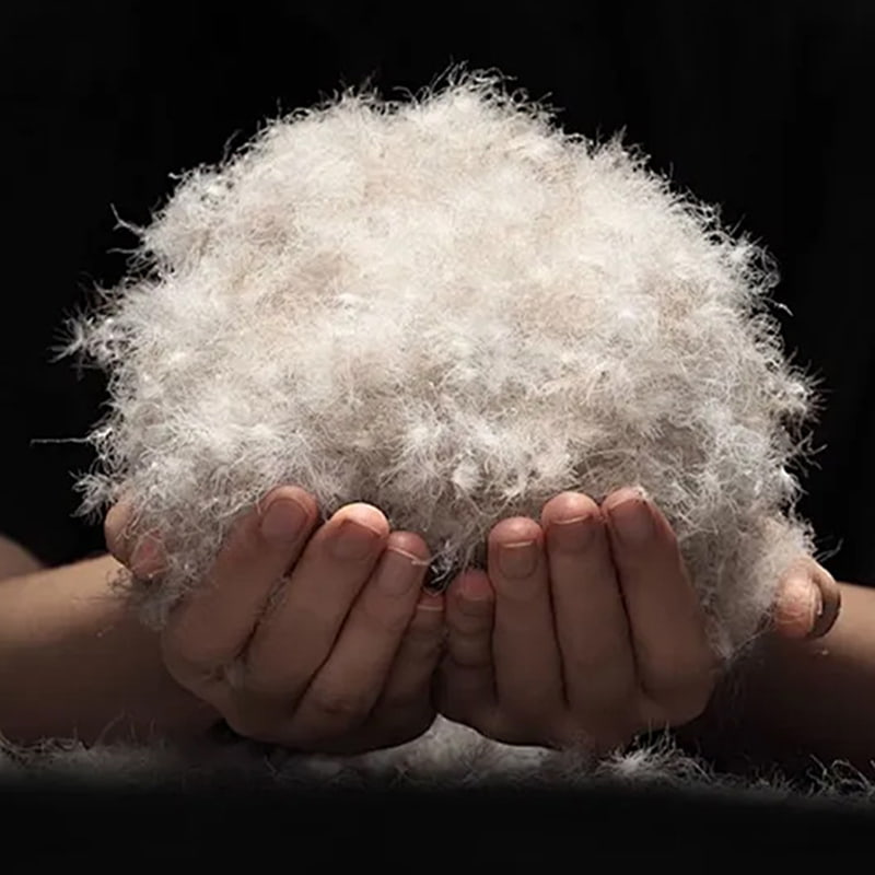 Colligimus nucleum in locis producentibus abdominis anatis grisei, cervicis et alis, eosque per processum delicatum pectendi processum ad structuram naturalem "calinae floris" penitus retinendam. 90% impletionis est fibra summa anatis grisei grisei, cuius superficies sphaericae cum densa retis poris triangularibus micron-simis distributa est, cum strato aere velitato cum dynamica moderatione temperaturae formans. Cum temperatura ambientium fluctuat, fibrae demissae automatice augent vel contrahunt mutationes corporis temperaturae, vapores calidi et humidi ab humano corpore emisso efficaciter absorbentes, dum infiltratione aeris frigidi extrinseci efficaciter claudunt, subtilis temperaturae temperantiam circum horologium obtinentes. Comparatus cum impletionibus ordinariis plumae, fibra interdum animalis naturalis anatis grisei magis fluffiness et mollitiam habet. Dum calor retentionis effectum efficientem praebet, significanter pondus vestimentorum minuit, ut velatos experientiam consolationis professionalis gradu adipiscatur..